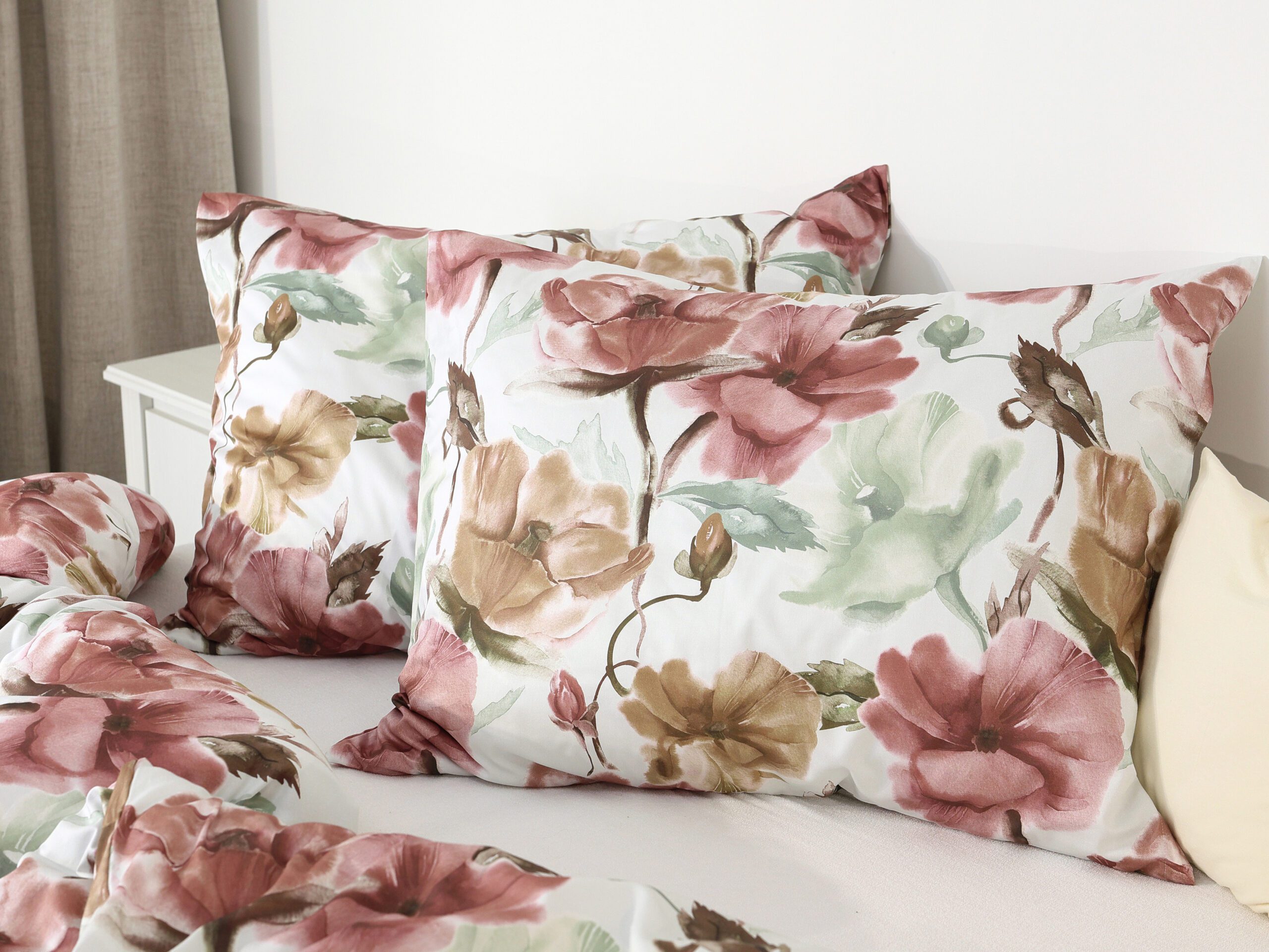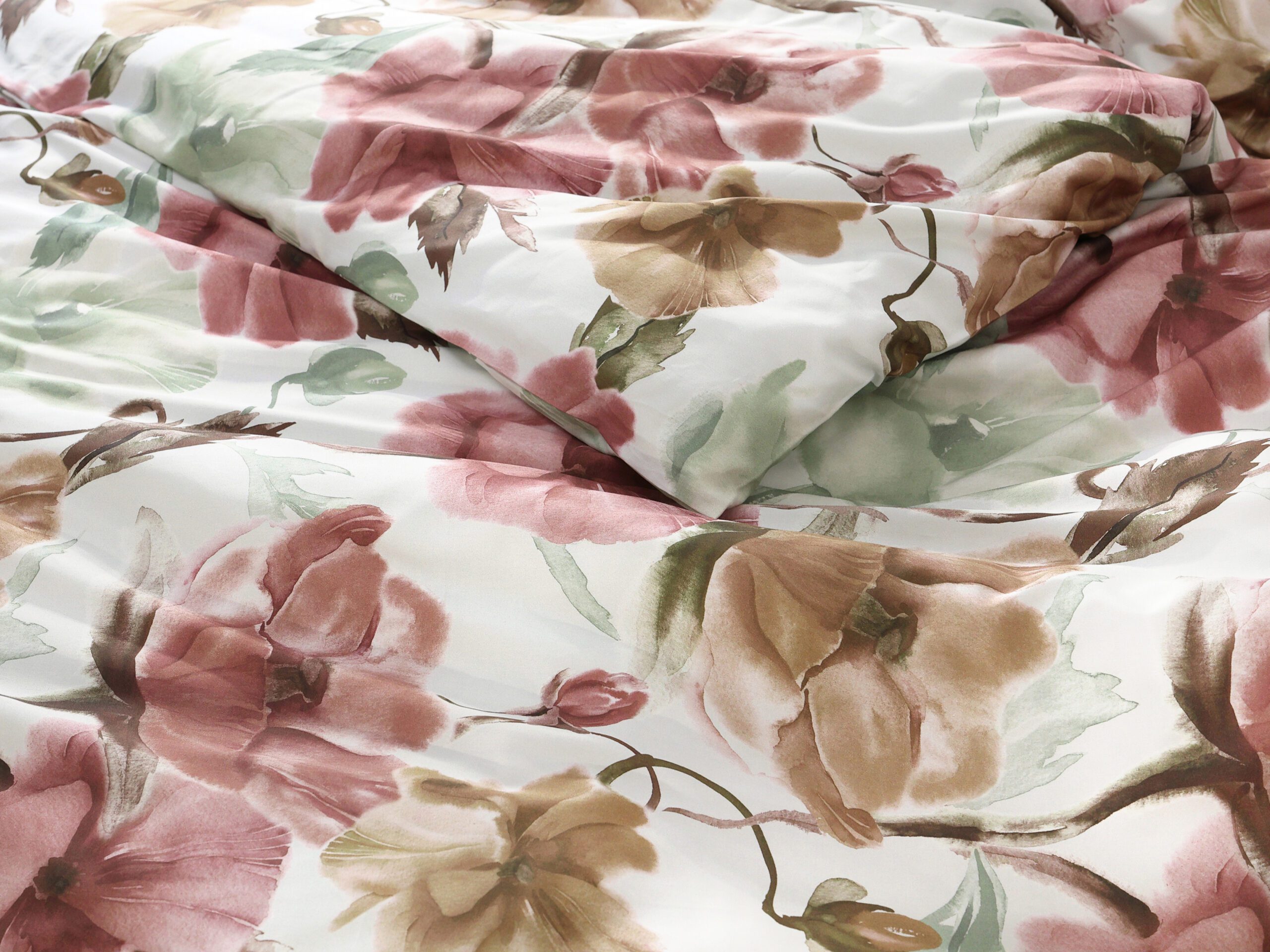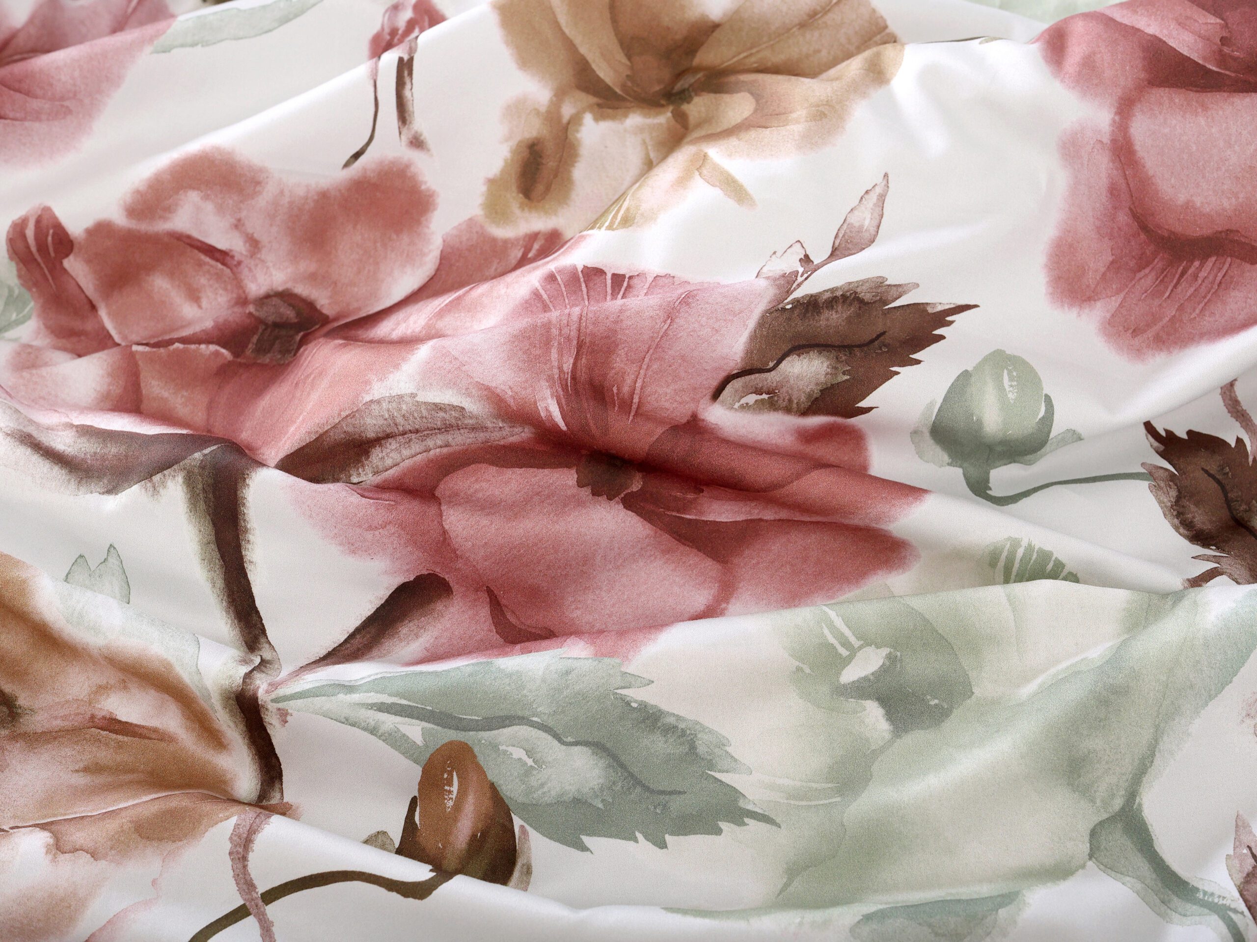 Naše saténové povlečení růžovo-béžové květy kombinuje kvalitu a dlouhou životnost. Díky 100% hustě tkané bavlněné přízni je povlečení krásně hebké a lesklé.