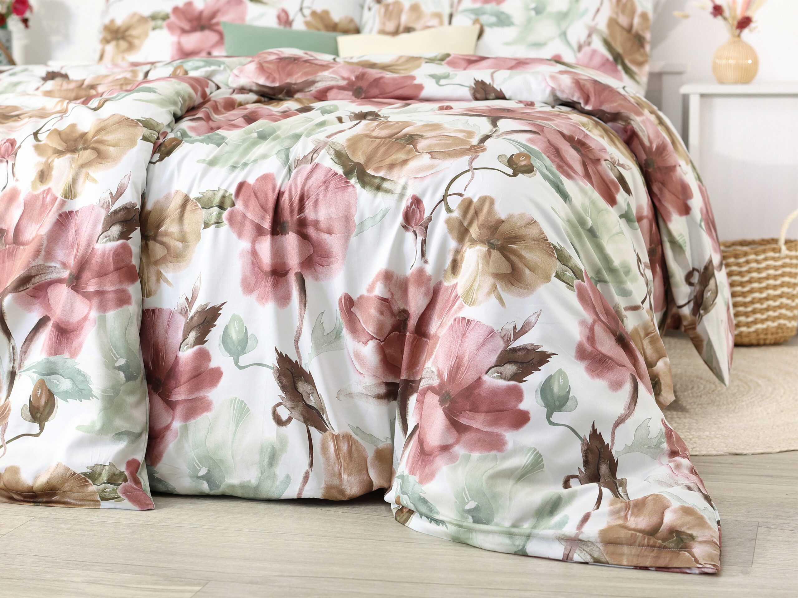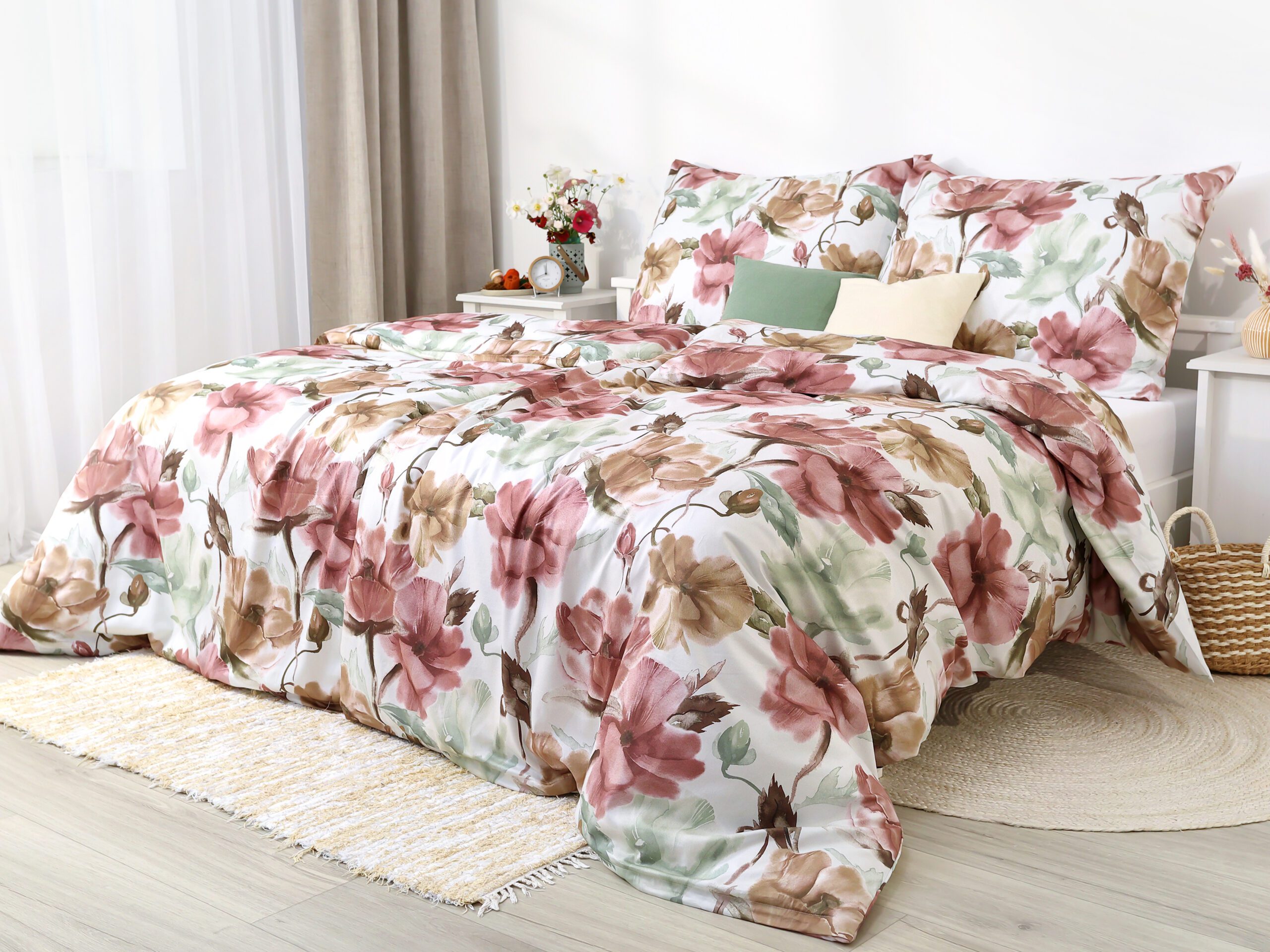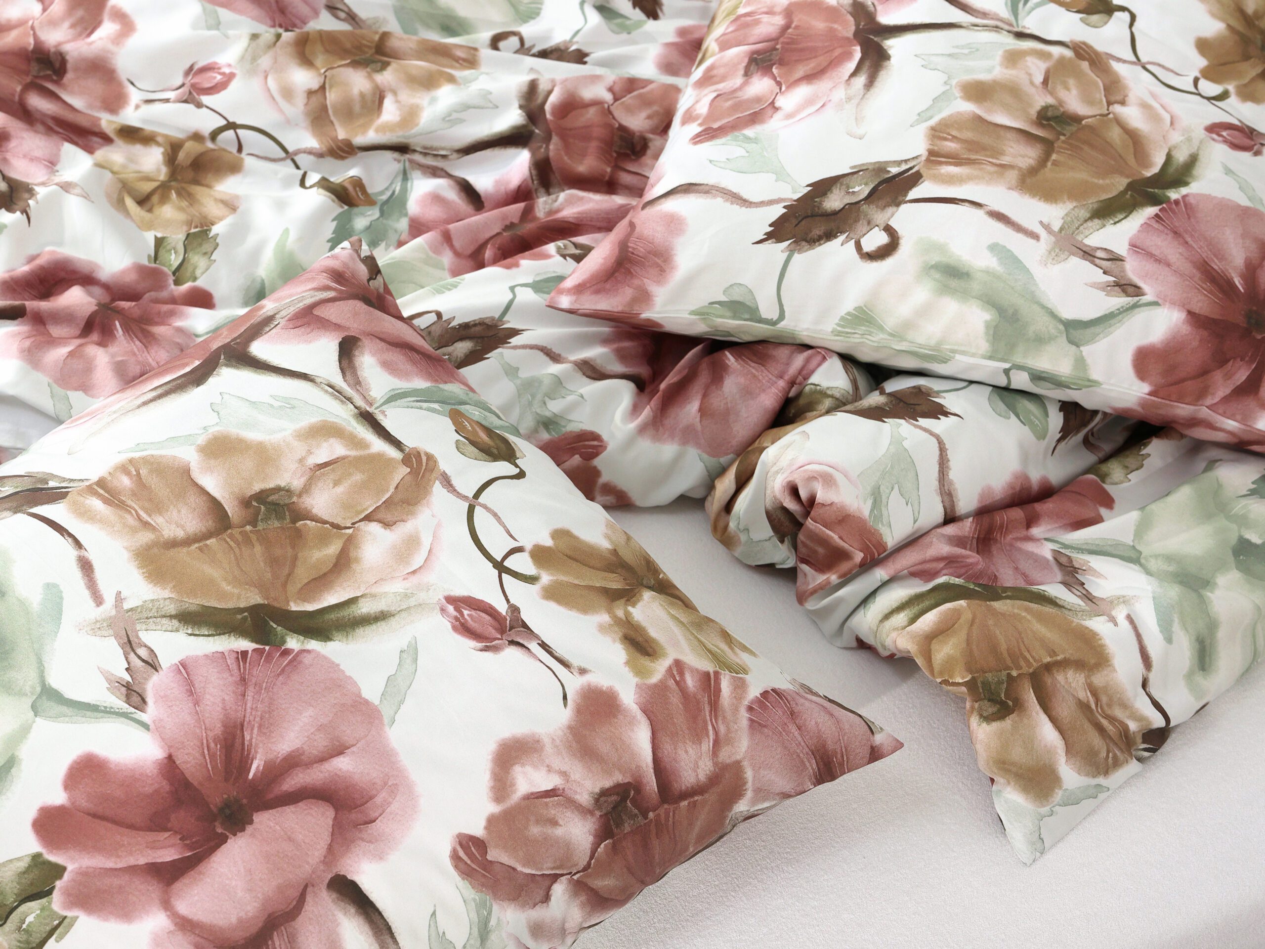 Naše saténové povlečení růžovo-béžové květy kombinuje kvalitu a dlouhou životnost. Díky 100% hustě tkané bavlněné přízni je povlečení krásně hebké a lesklé.