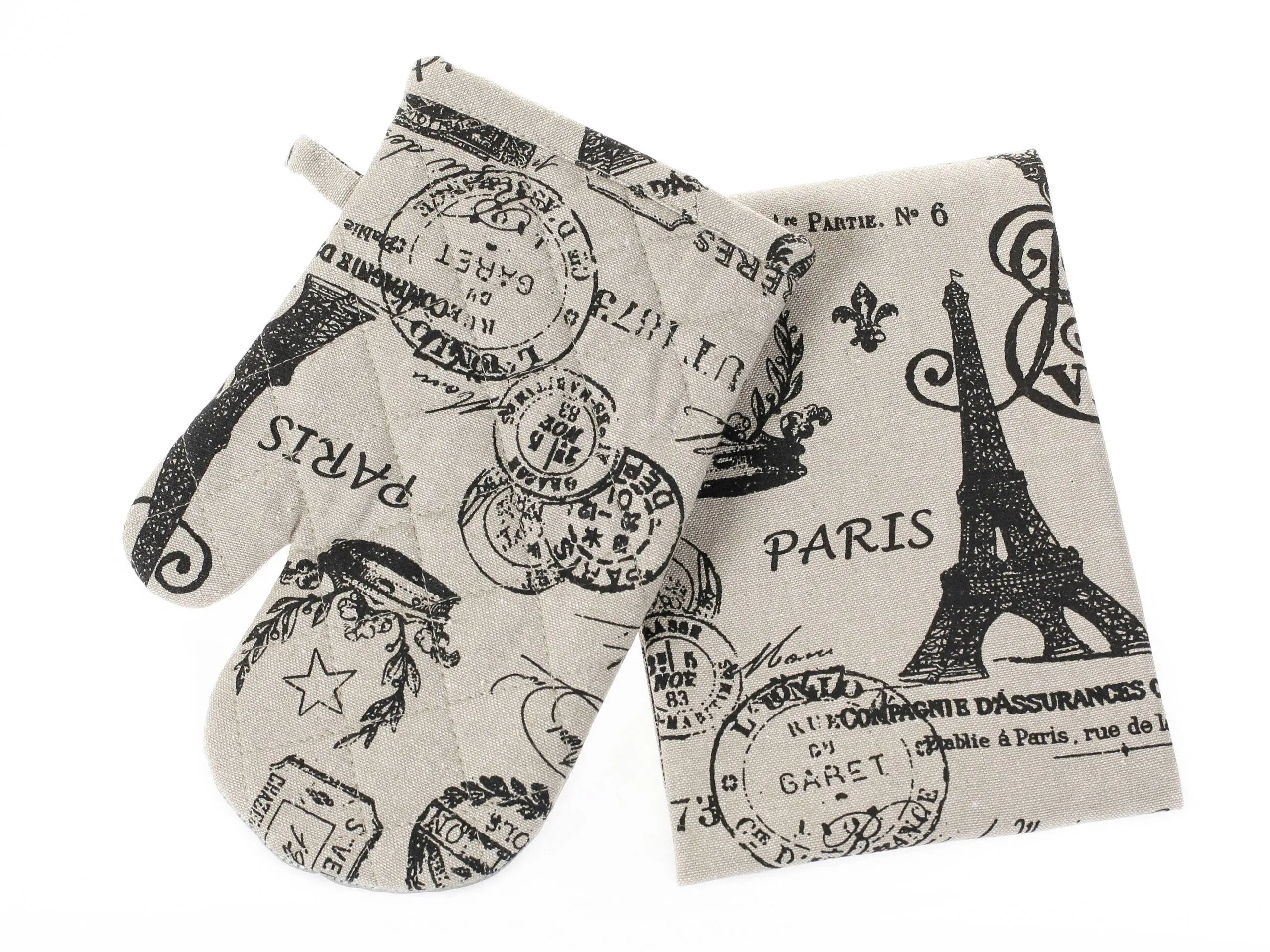 Kuchyňský set chňapka + utěrka Terra Paris na režné barvě jsou ideální volbou do Vaší kuchyně.