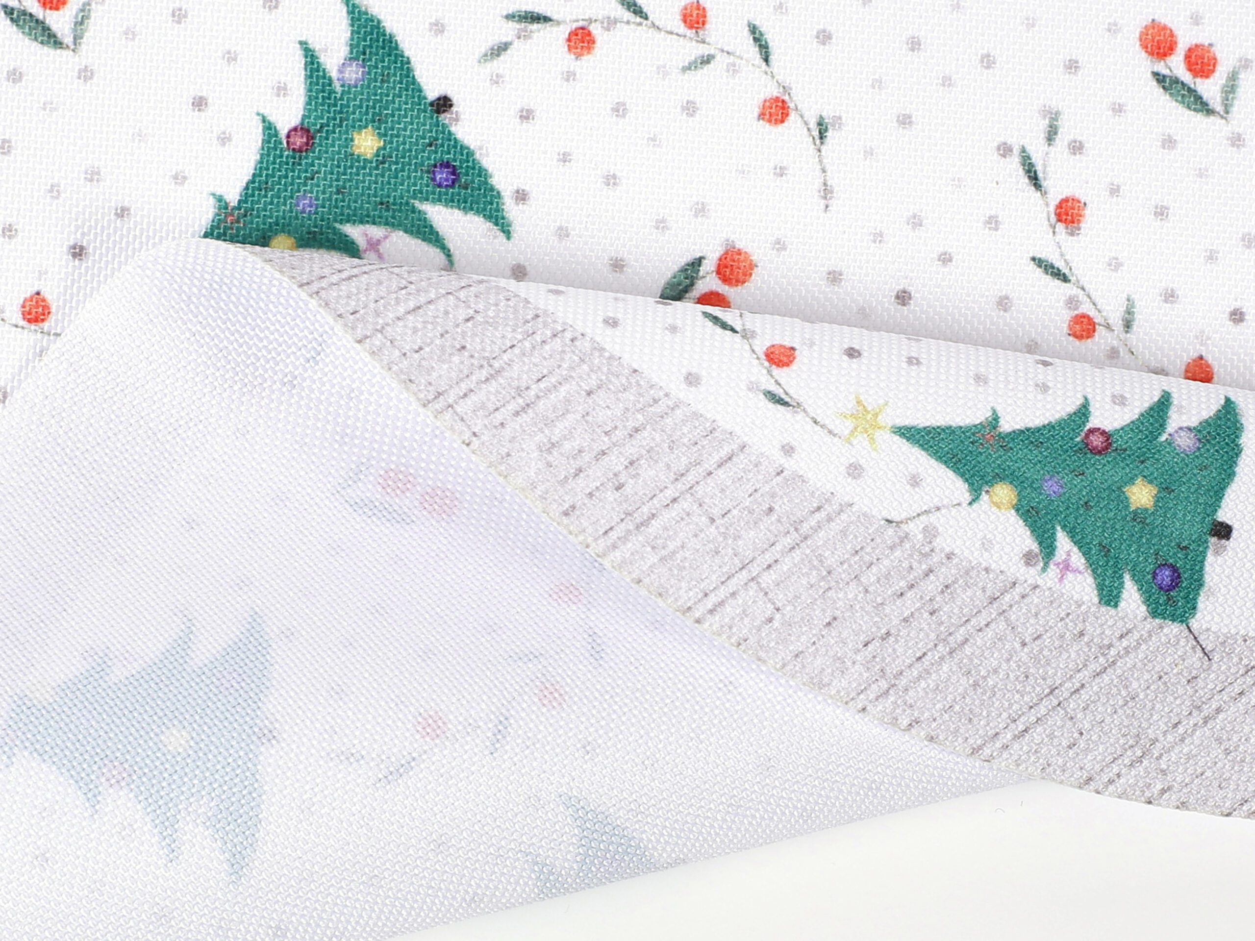 S motivem vánočních stromečků na bílé barvě a krásnými detaily dodáte vašemu stolu pravý vánoční nádech.