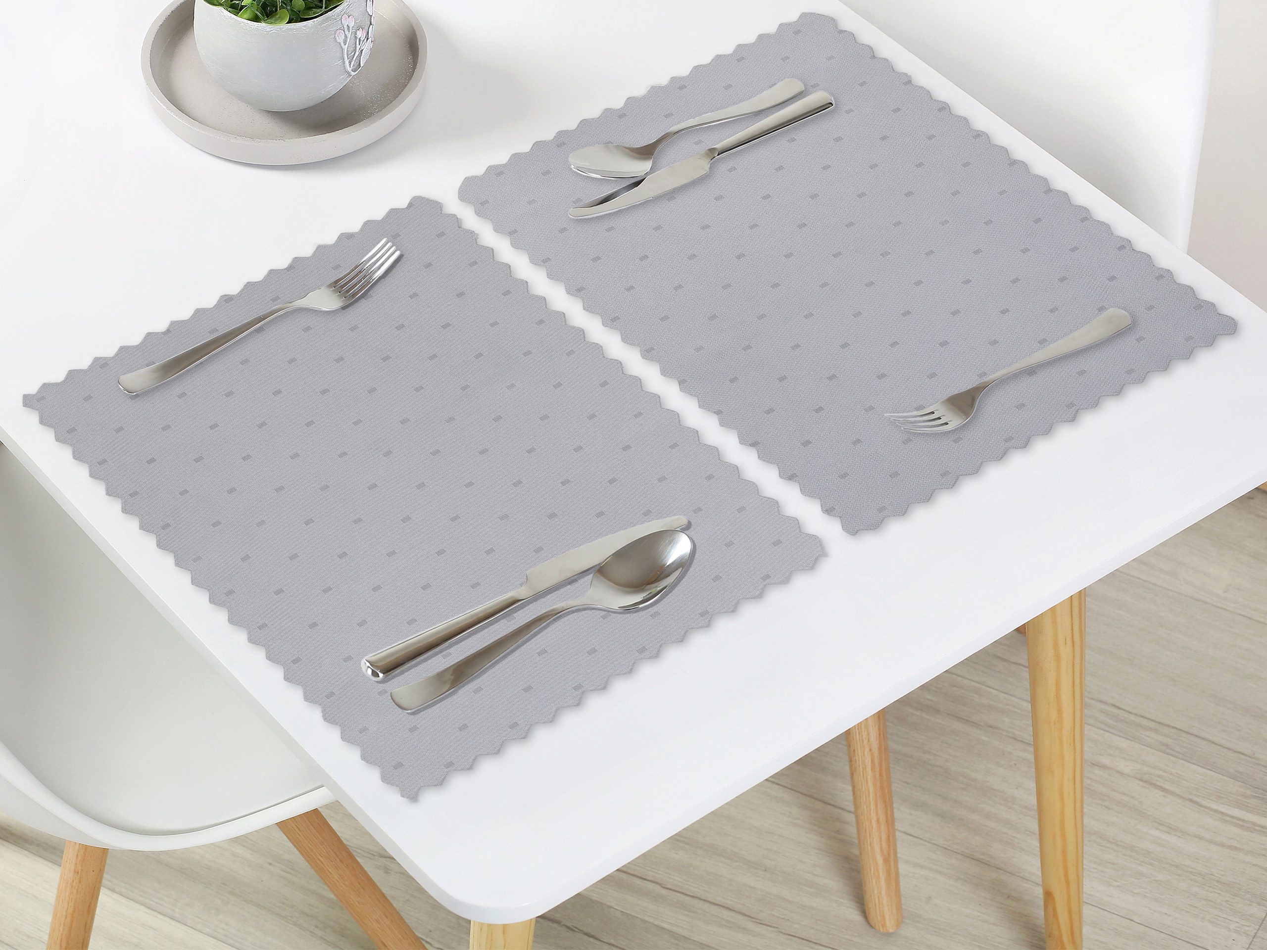 Rozměr prostírání je 30×40 cm, 35×45 cm. Toto šedé prostírání je vysoce praktické a snadno udržovatelné. Díky teflonové úpravě je odolné vůči skvrnám a vylitým tekutinám, které snadno setřete hadříkem. Také má voděodolné vlastnosti, takže nemusíte mít obavy ze skvrn od jídla.