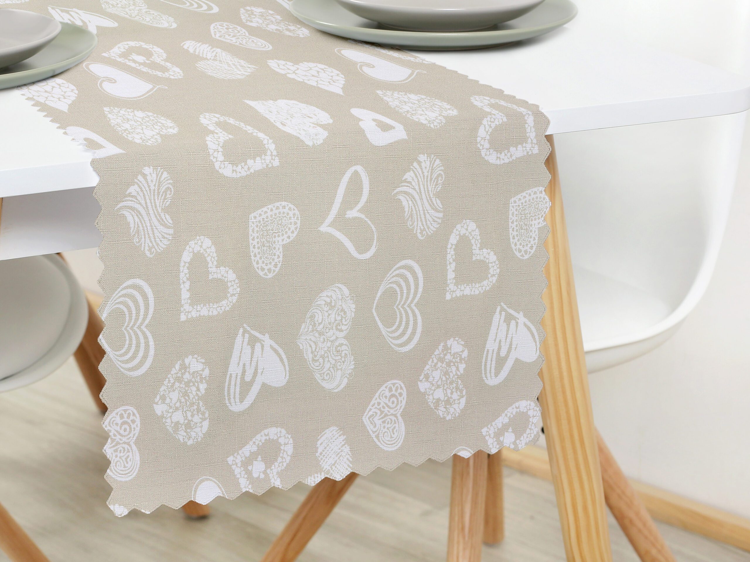 Náš teflonový běhoun bílé srdce na režné je přesně to, co oživí váš jídelní stůl a dodá mu nový nádech. Díky kvalitnímu provedení a použitému polyesteru je tento moderní běhoun nejen krásný, ale i odolný. Všechny skvrny a vylité tekutiny snadno setřete hadříkem.