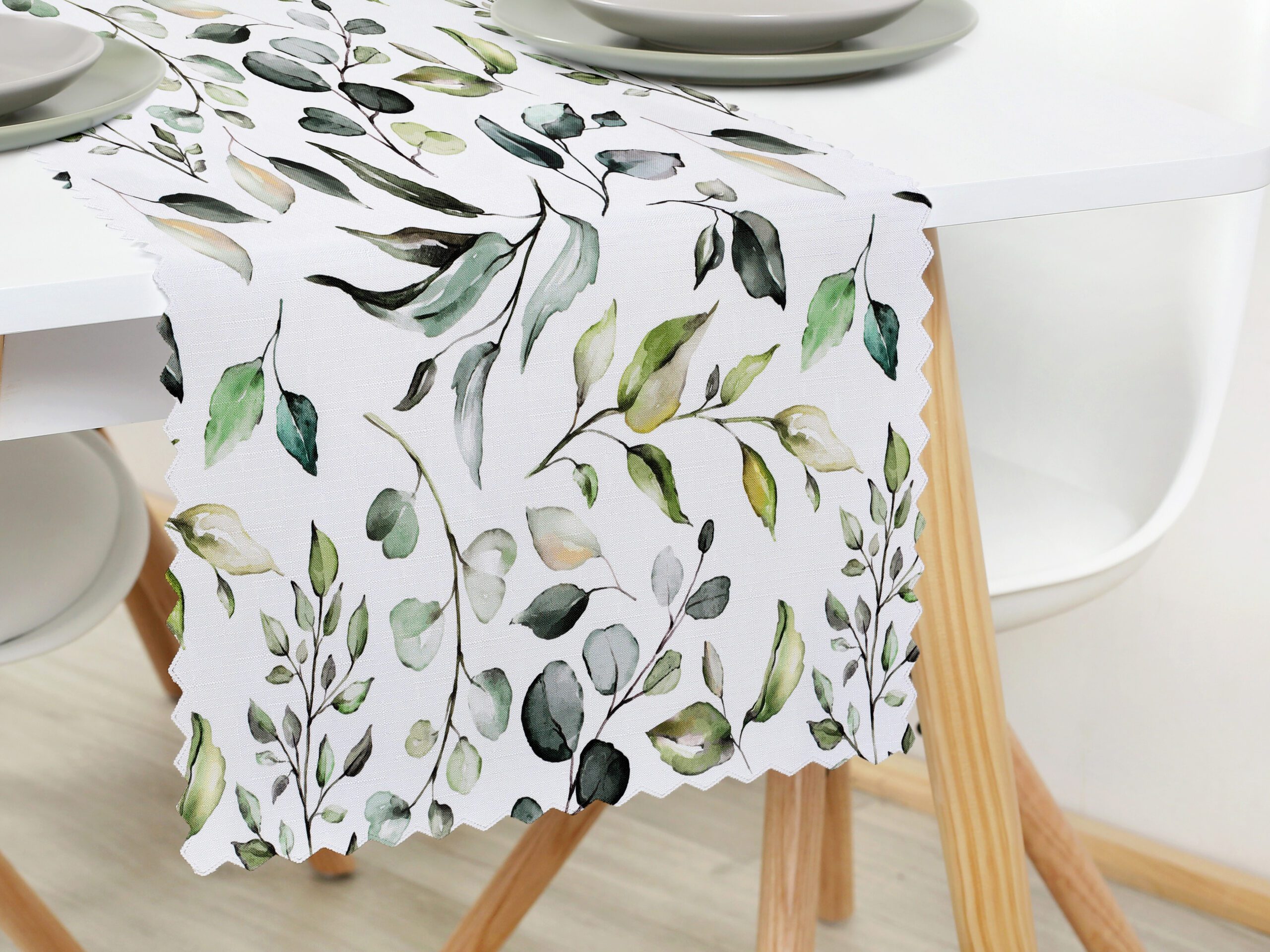 Náš teflonový běhoun eukalyptové lístky je přesně to, co oživí váš jídelní stůl a dodá mu nový nádech. Díky kvalitnímu provedení a použitému polyesteru je tento běhoun s lístky eukalyptu nejen krásný, ale i odolný. Všechny skvrny a vylité tekutiny snadno setřete hadříkem.