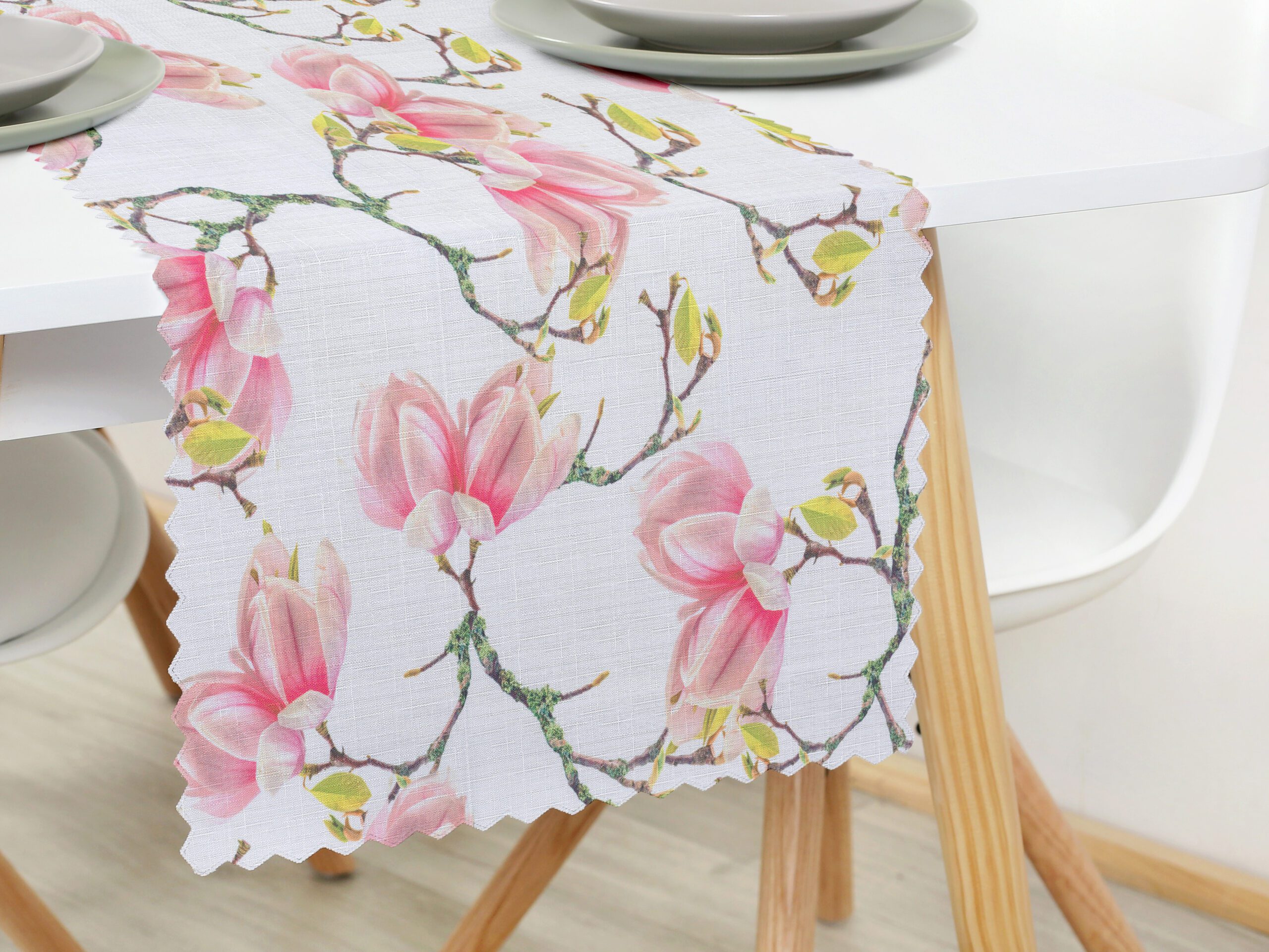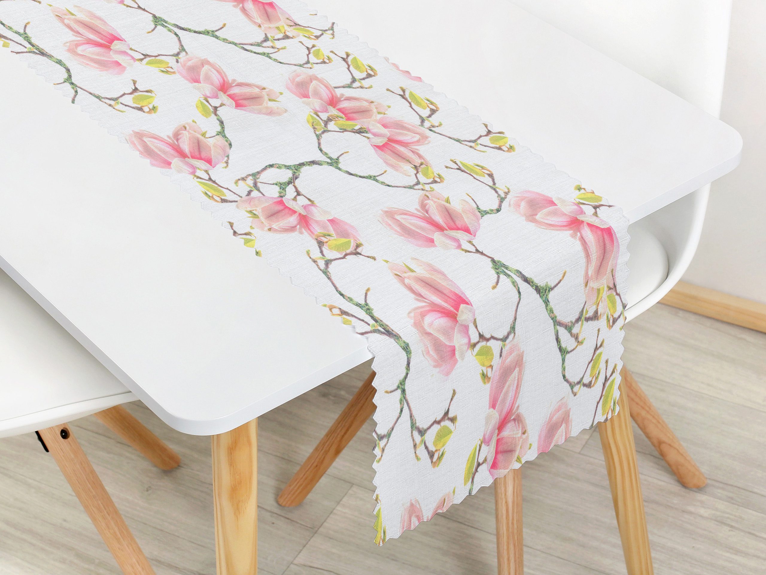 Náš teflonový běhoun magnolie je přesně to, co oživí váš jídelní stůl a dodá mu nový nádech. Díky kvalitnímu provedení a použitému polyesteru je tento květinový běhoun nejen krásný, ale i odolný. Všechny skvrny a vylité tekutiny snadno setřete hadříkem.