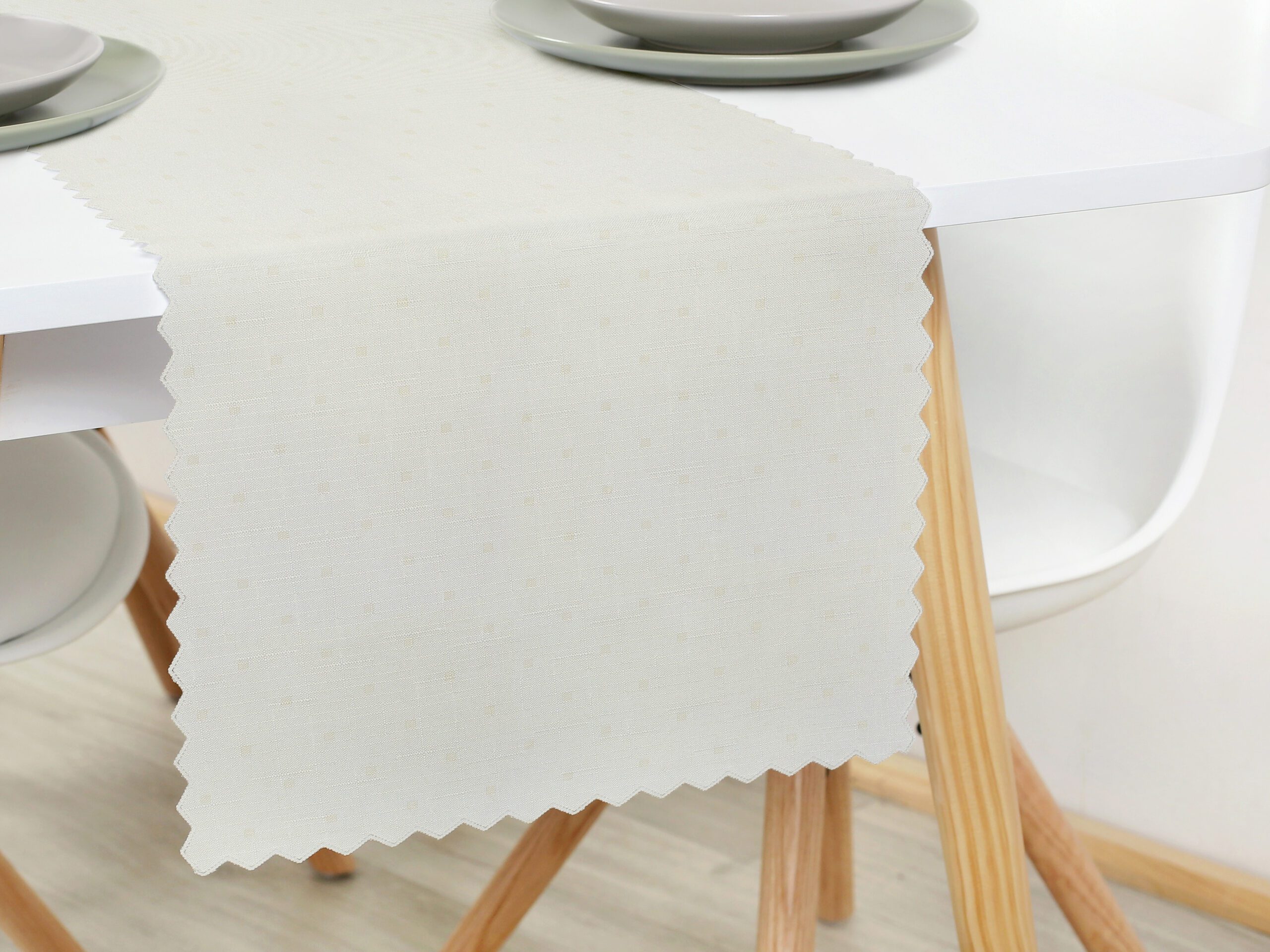 • 100% polyester: Tento smetanový běhoun na stůl je vyroben z pevného a odolného polyesteru, který vydrží dlouhé roky.
