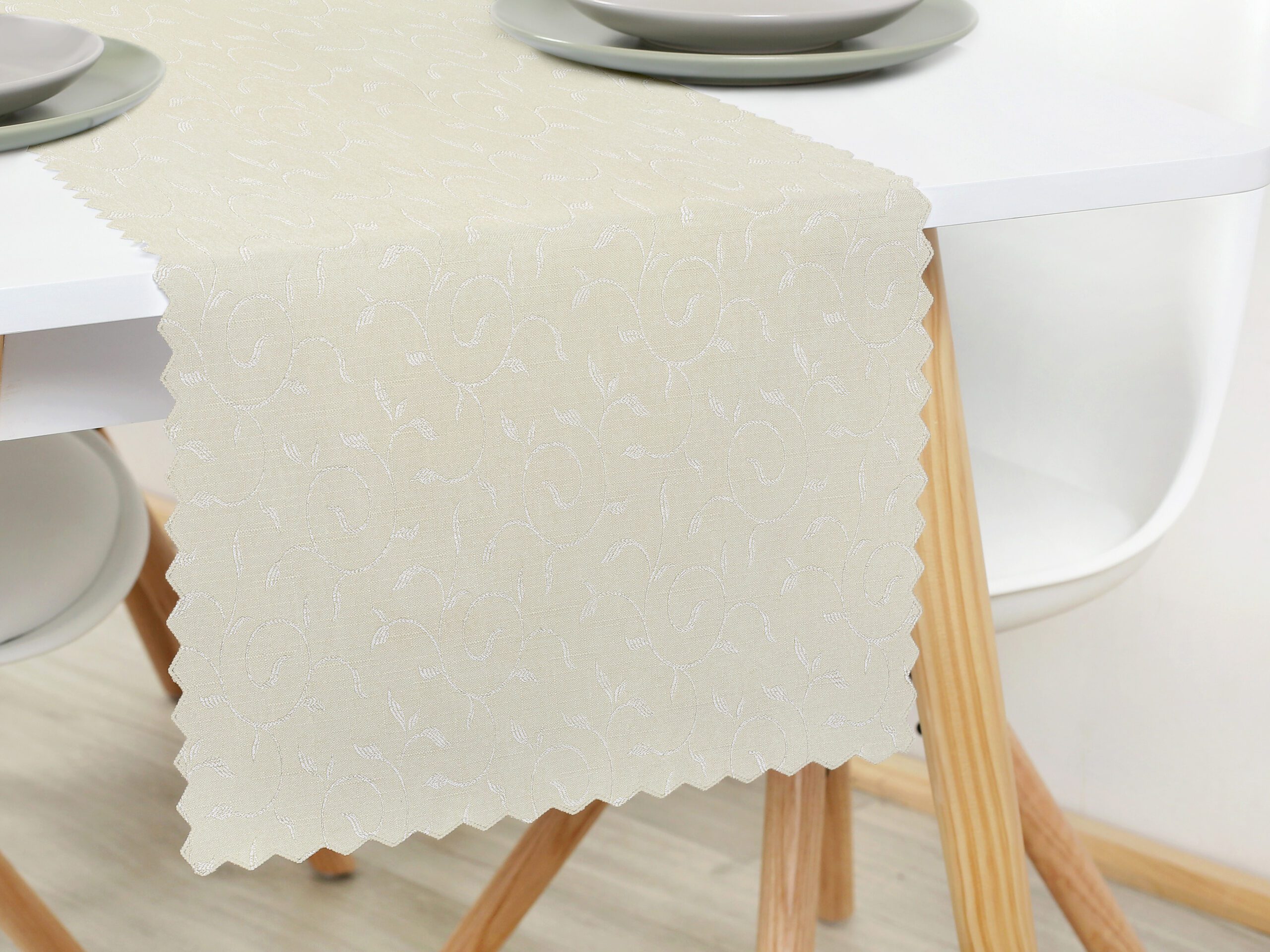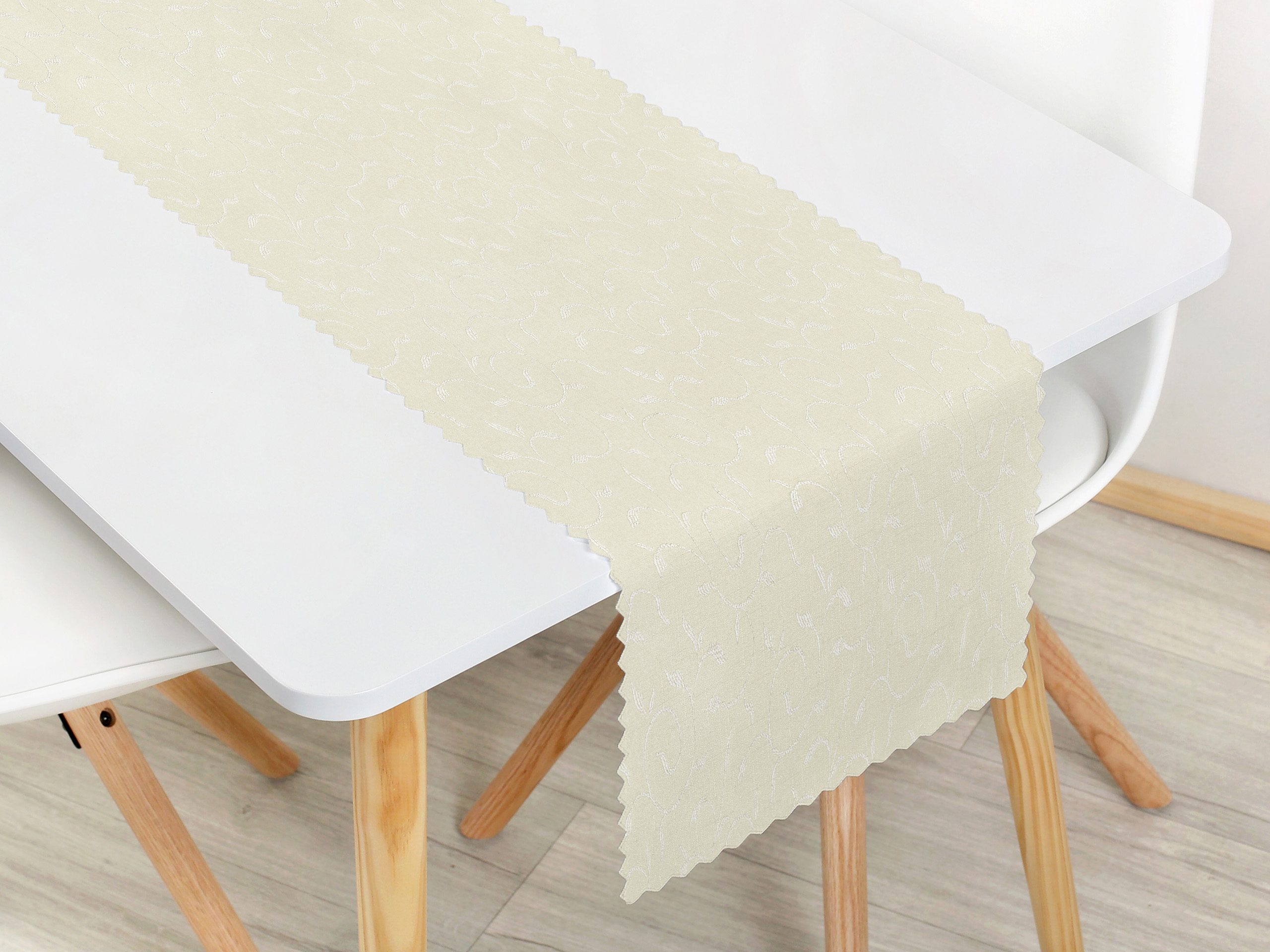 - 100% polyester: Tento smetanový běhoun na stůl je vyroben z pevného a odolného polyesteru, který vydrží dlouhé roky.