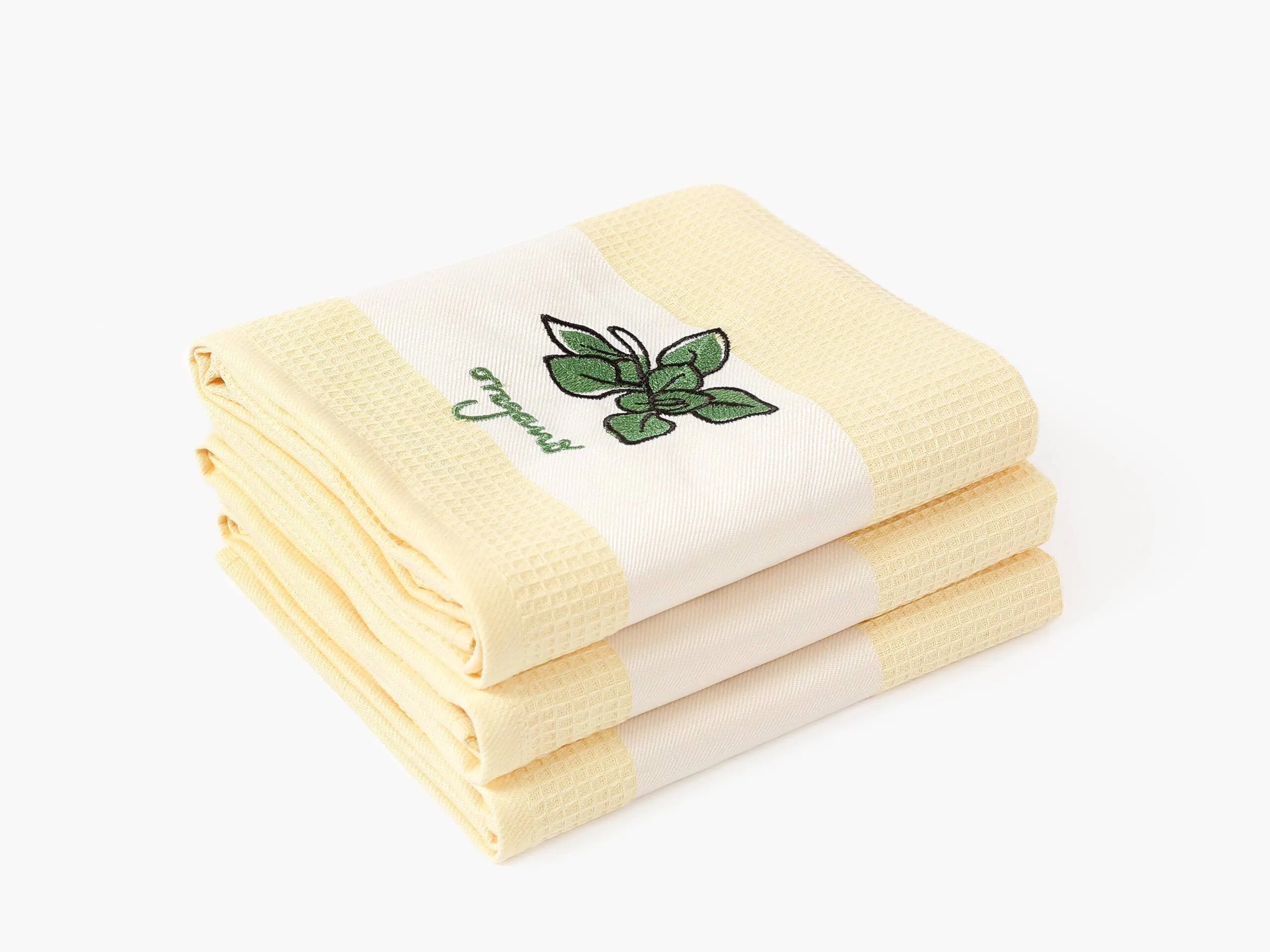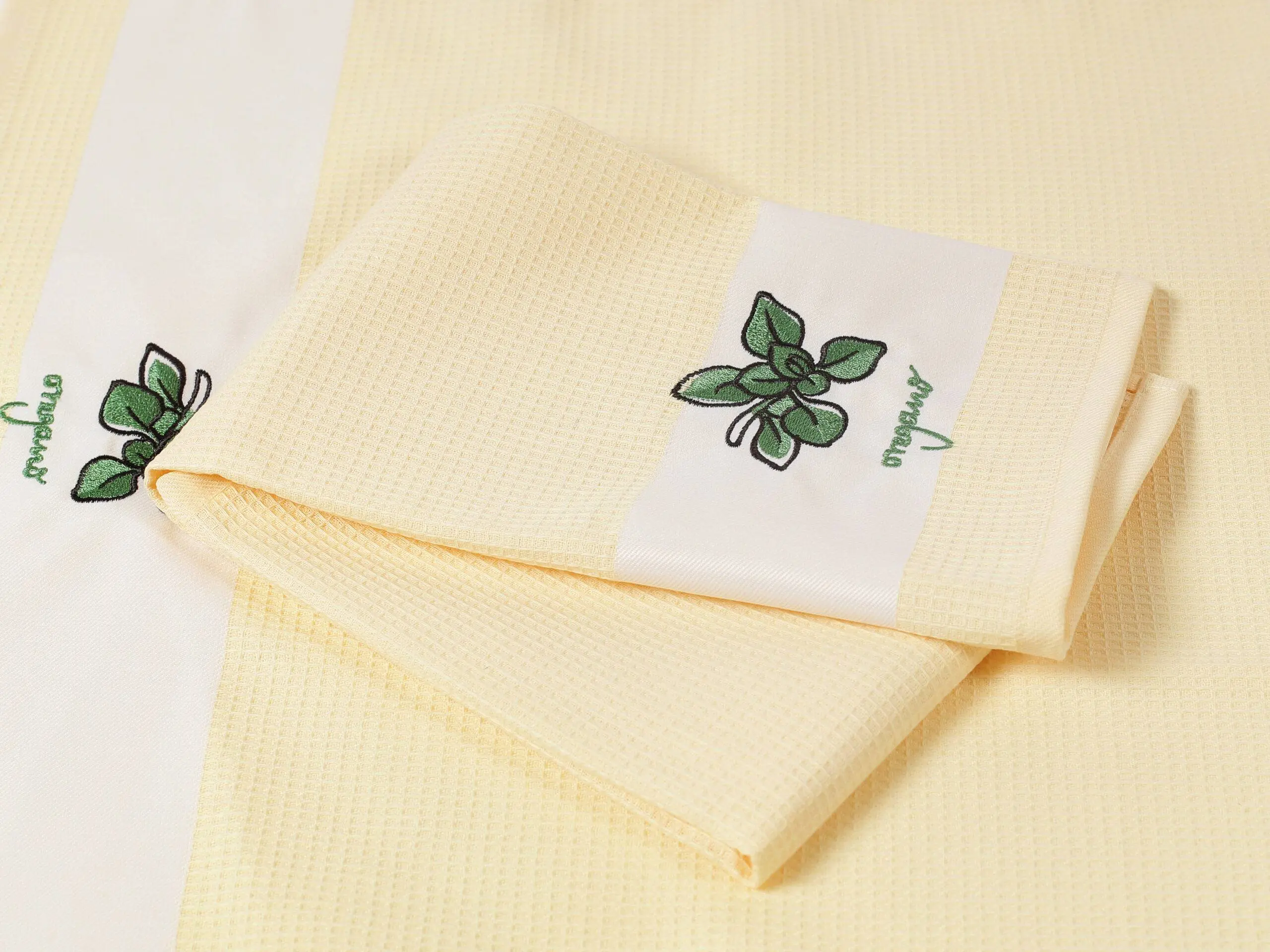 Kvalitní vaflová utěrka oregano na žluté o rozměrech 45×70 cm, je ideální volbou do Vaší kuchyně.