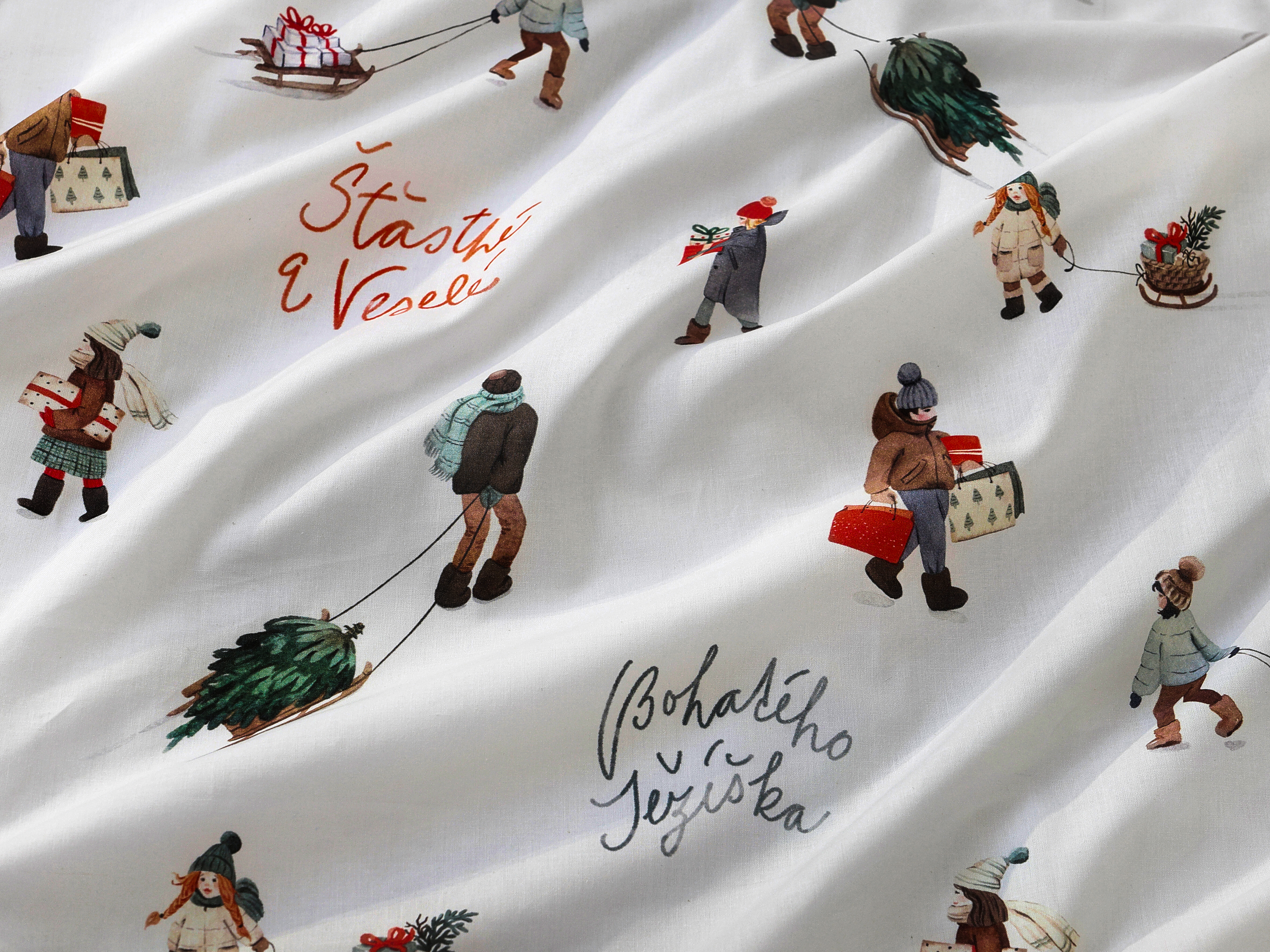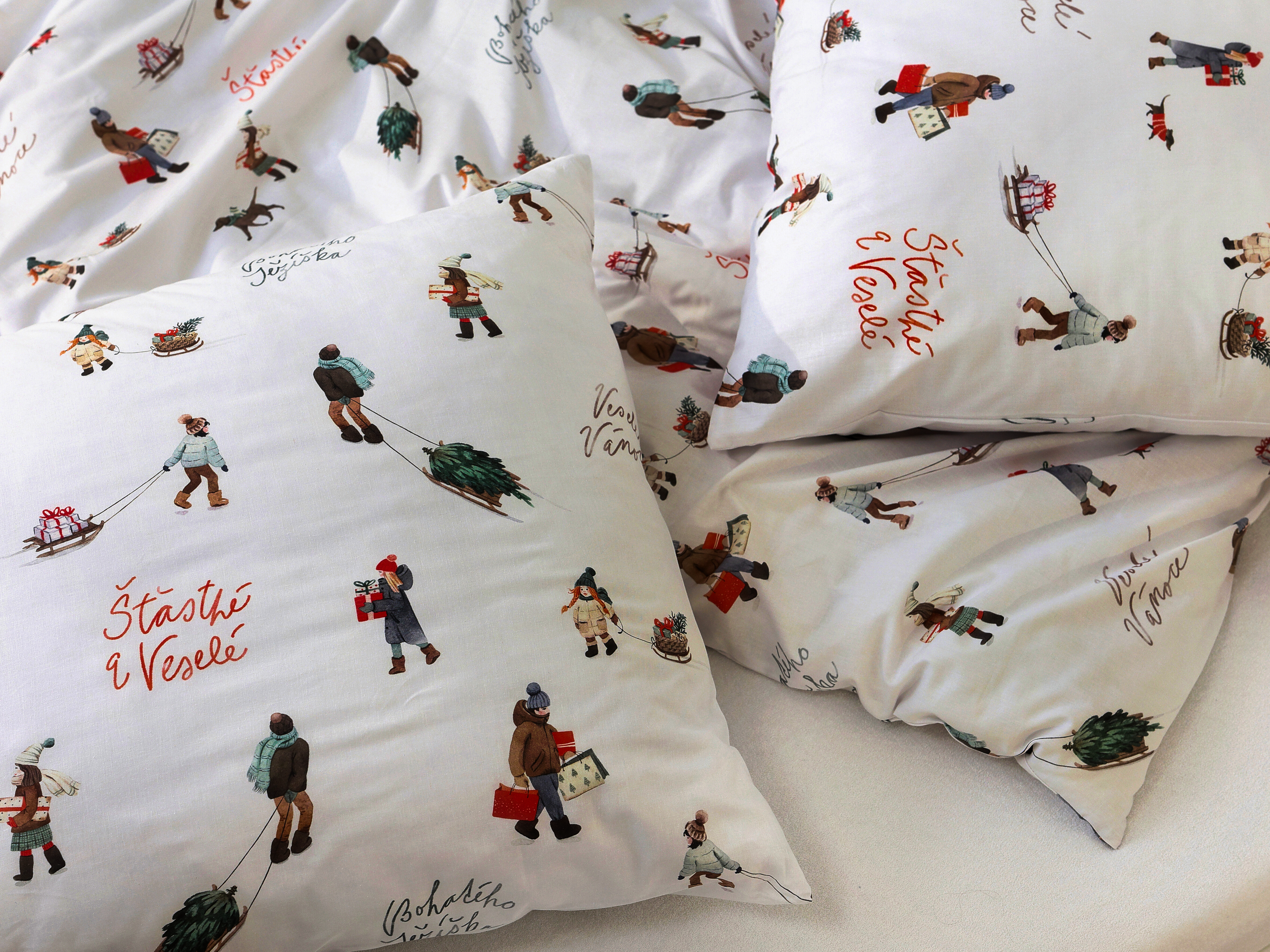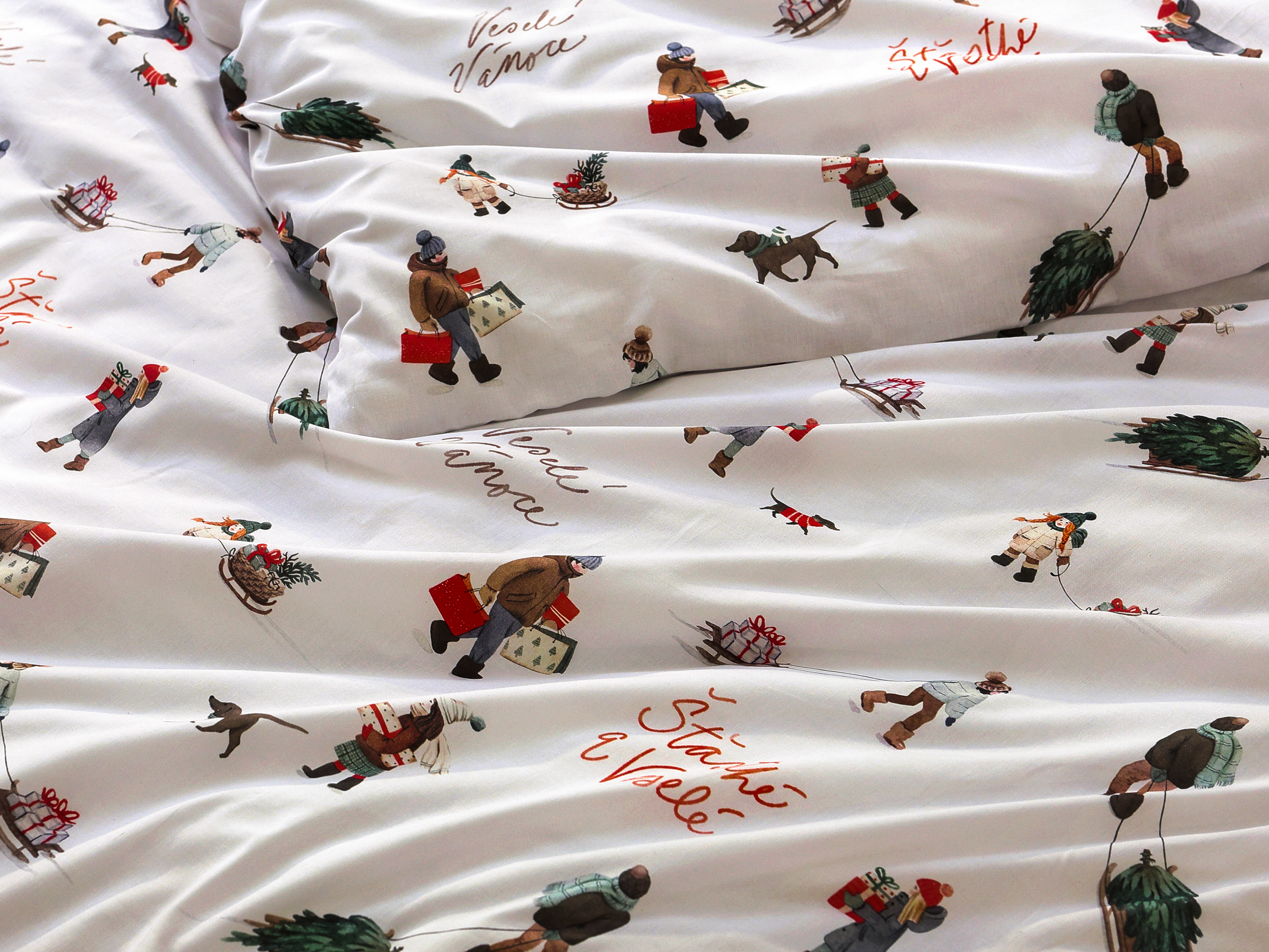 Představujeme vám naši novinku pro letošní rok – bavlněné povlečení Veselé Vánoce. Tento originální design zobrazuje veselé vánoční scény, které přinášejí do vaší ložnice příjemnou sváteční atmosféru. Vzory s českými texty „Veselé Vánoce“ a zábavnými postavičkami při vánočních aktivitách vytvářejí krásnou a veselou vánoční náladu.