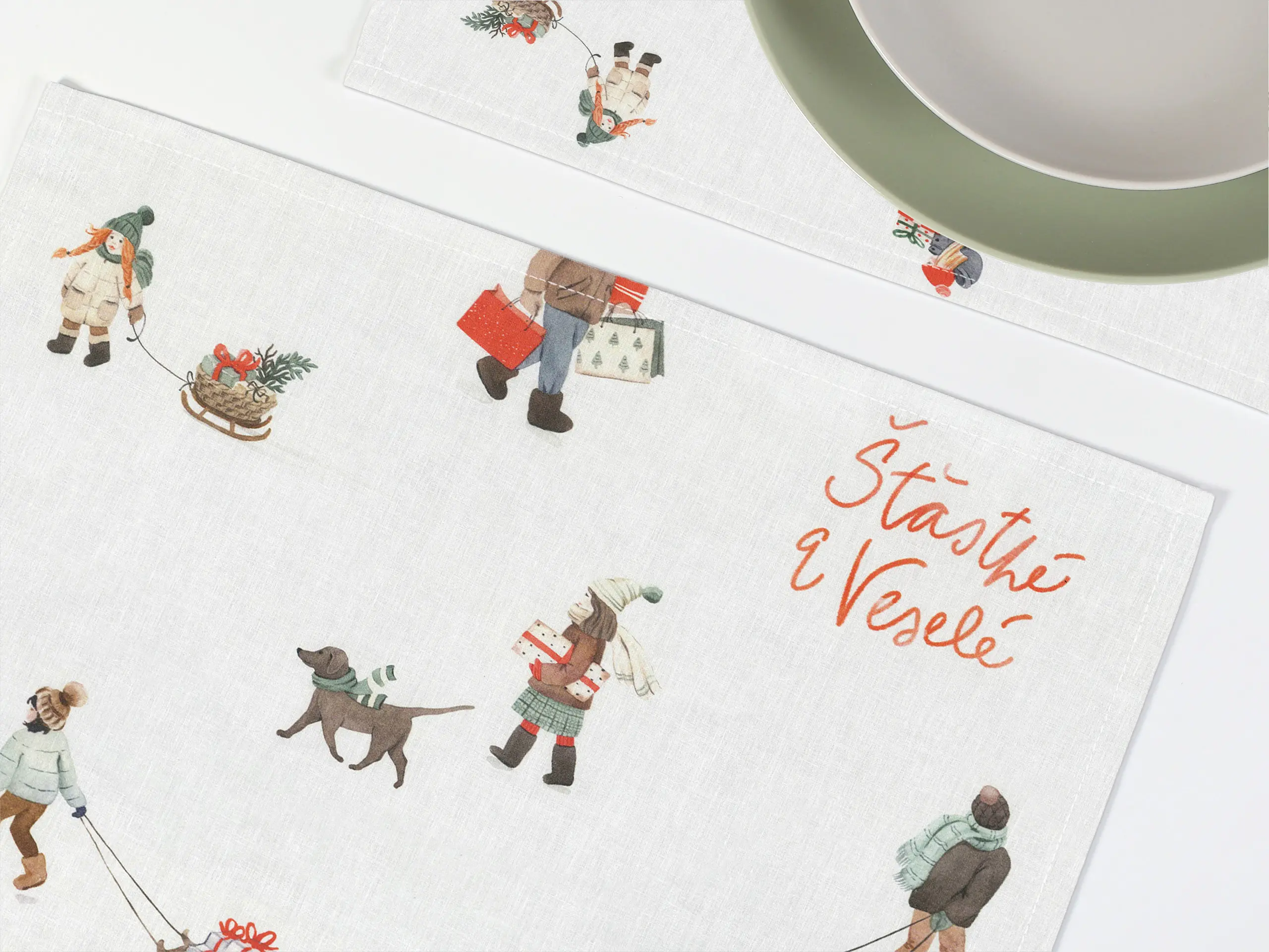 Jeho stálobarevnost zajistí, že i po mnoha praních bude vypadat stále jako nové. Díky vánočnímu vzoru s českými texty na bílé barvě a krásným detailům dodáte vašemu stolu okouzlující a vánoční atmosféru. Každým rokem ho můžete použít znovu a znovu, ať už při rodinném vánočním večeři nebo při posezení s přáteli.