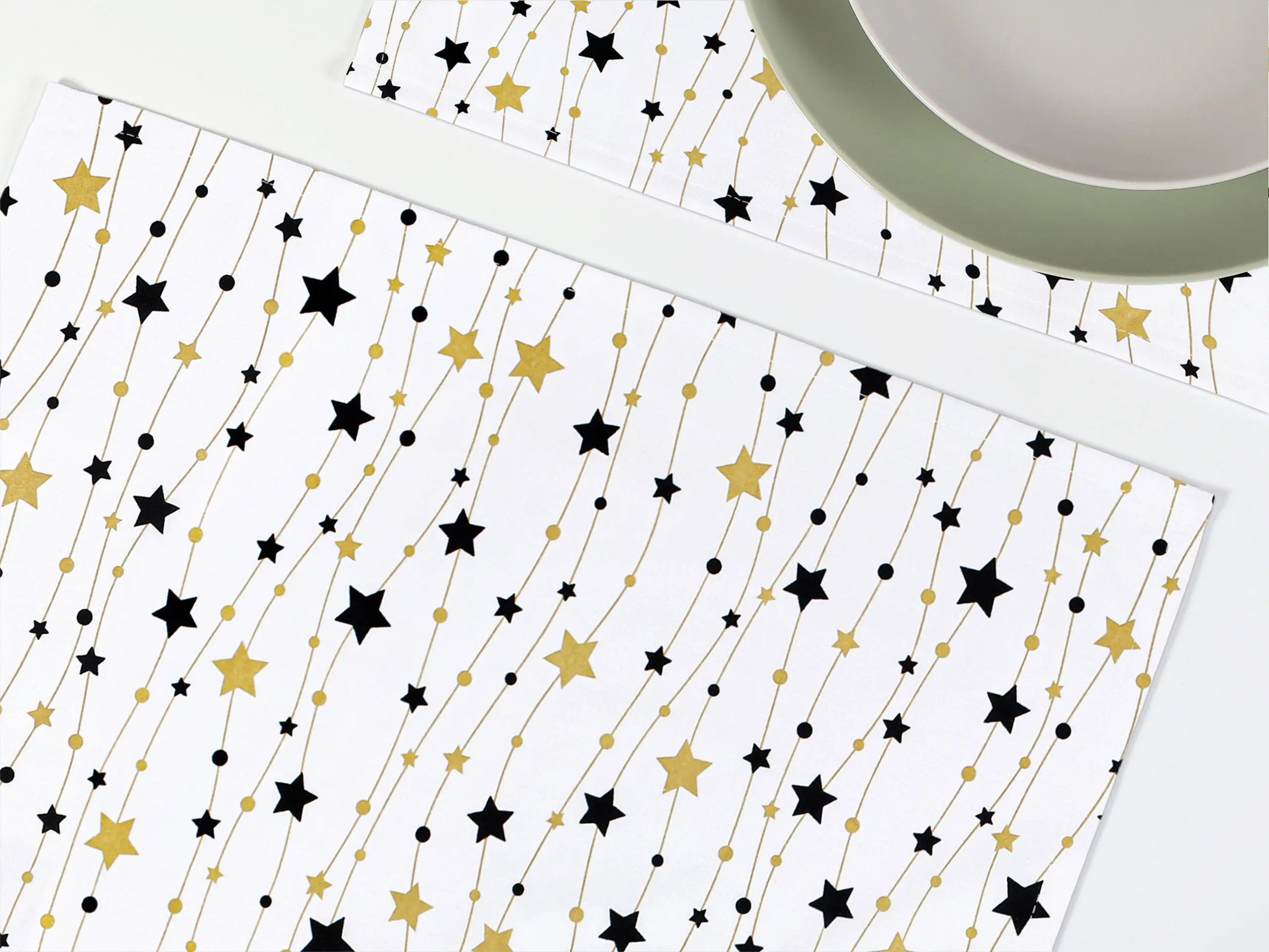 Vánoční bavlněné prostírání zlaté a černé hvězdy na bílé je skvělým doplňkem pro váš vánoční stůl. Vyrobili jsme ho s láskou a pečlivostí v našich českých šicích dílnách Škodák, aby se stalo nedílnou součástí vašich vánočních oslav. Prostírání je vyrobeno ze 100% bavlněné látky s gramáží 220 g/m², což mu dodává pevnost a odolnost.